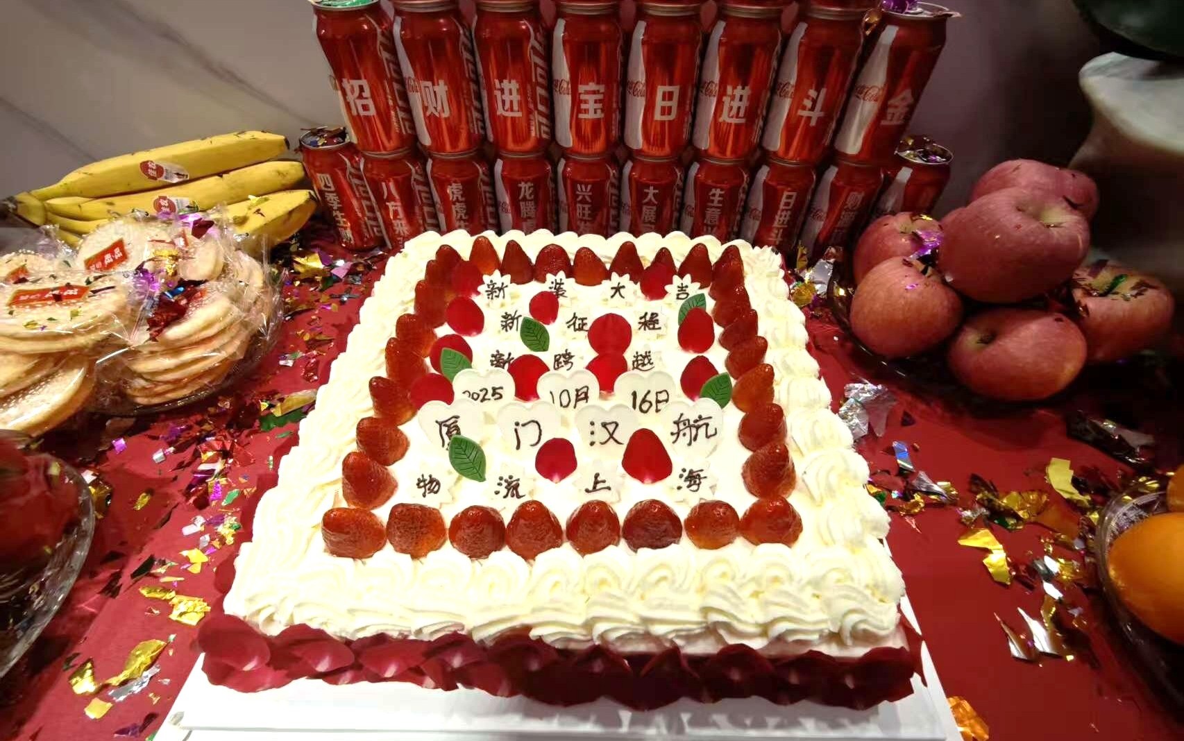 致辭結(jié)束后,集團領(lǐng)導(dǎo)與上海分公司全體員工共同移步前臺,相機快門按下,定格下一張張洋溢著自信與笑容的臉龐,展現(xiàn)著漢航團隊的蓬勃朝氣與奮進姿態(tài)。隨后,張暉親手切開象征喜悅與團圓的蛋糕,工作人員將一塊塊甜蜜的蛋糕遞到每位員工手中,在分享美味的同時,也傳遞著對未來的美好期許,現(xiàn)場暖意融融,氛圍溫馨而熱烈。